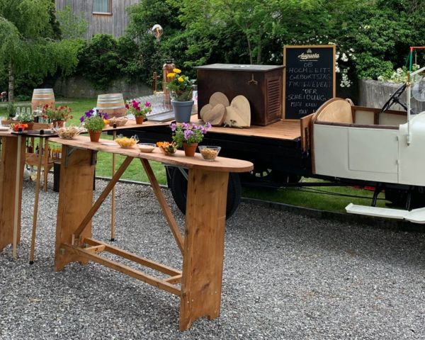 Unser toller Pferdeanhänger ist mobil. Man kann ihn gerne buchen für eine private Feier, wo immer man möchte.